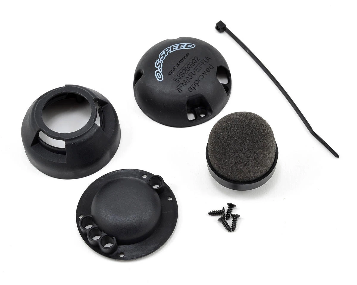 This is an optional O.S. Induction Silencer. This EFRA/IFMAR approved silencer was developed for .12 – .21 class on-road engines to help reduce noise levels, while at the same time having very little affect on power output.