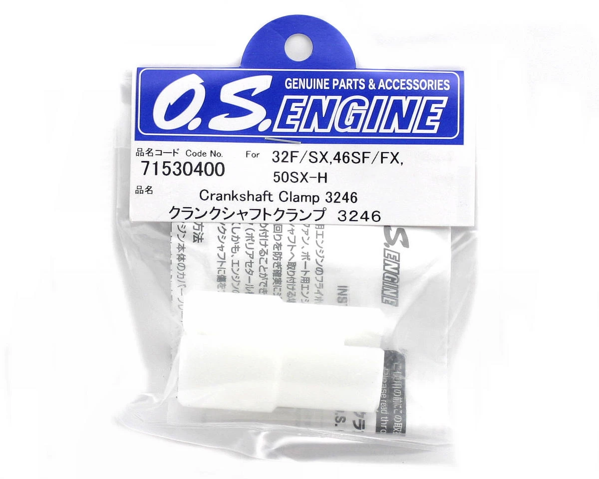 This is a Crankshaft Clamp (Locking Tool) from O.S. Engines. This will work with any .32, .46 and .50 size engine. This device facilitates the installation, or removal, of a flywheel, cooling fan or pilot shaft by temporaily locking the crankshaft so that it cannot rotate. Made of durable plastic, it locks the crankshaft without risk of damage to any part of the engine and can also be used with recoil-starter equipped engines.