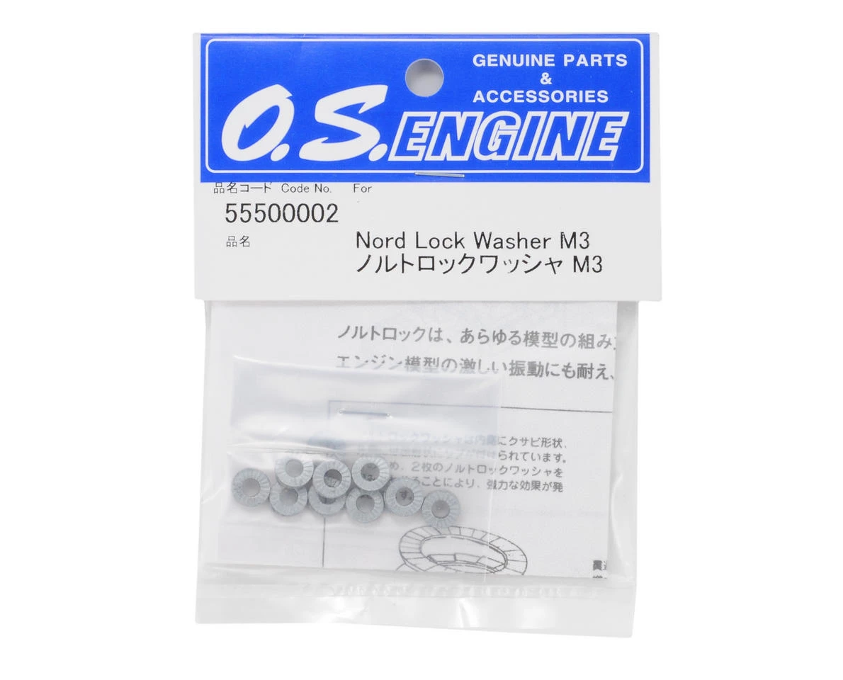 This a pack of twenty O.S. Engines 3mm Lock Washers which will build ten complete lock washers. These washers are used to mount engines to the engine mounts, but can be used anywhere a lock washer is needed.