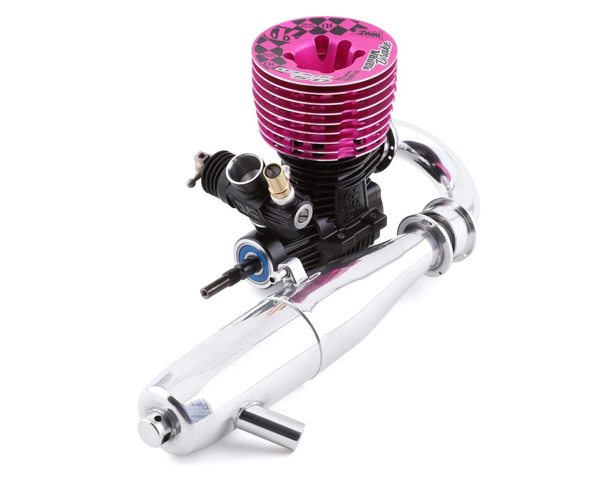 Finished in Ronda Drake’s signature pink color scheme applied to the cooling head and carburetor restrictors. This engine features the same bore and stroke, double counterweight embedded crankshaft with DLC coating, ceramic rear ball bearing and O-ringed inner head as the O.S. Speed Adam Drake engine. With all these features this is truly a race proven machine. Plus, this combo includes a 2100SC Pipe and 75mm manifold recommended for buggy racing applications.