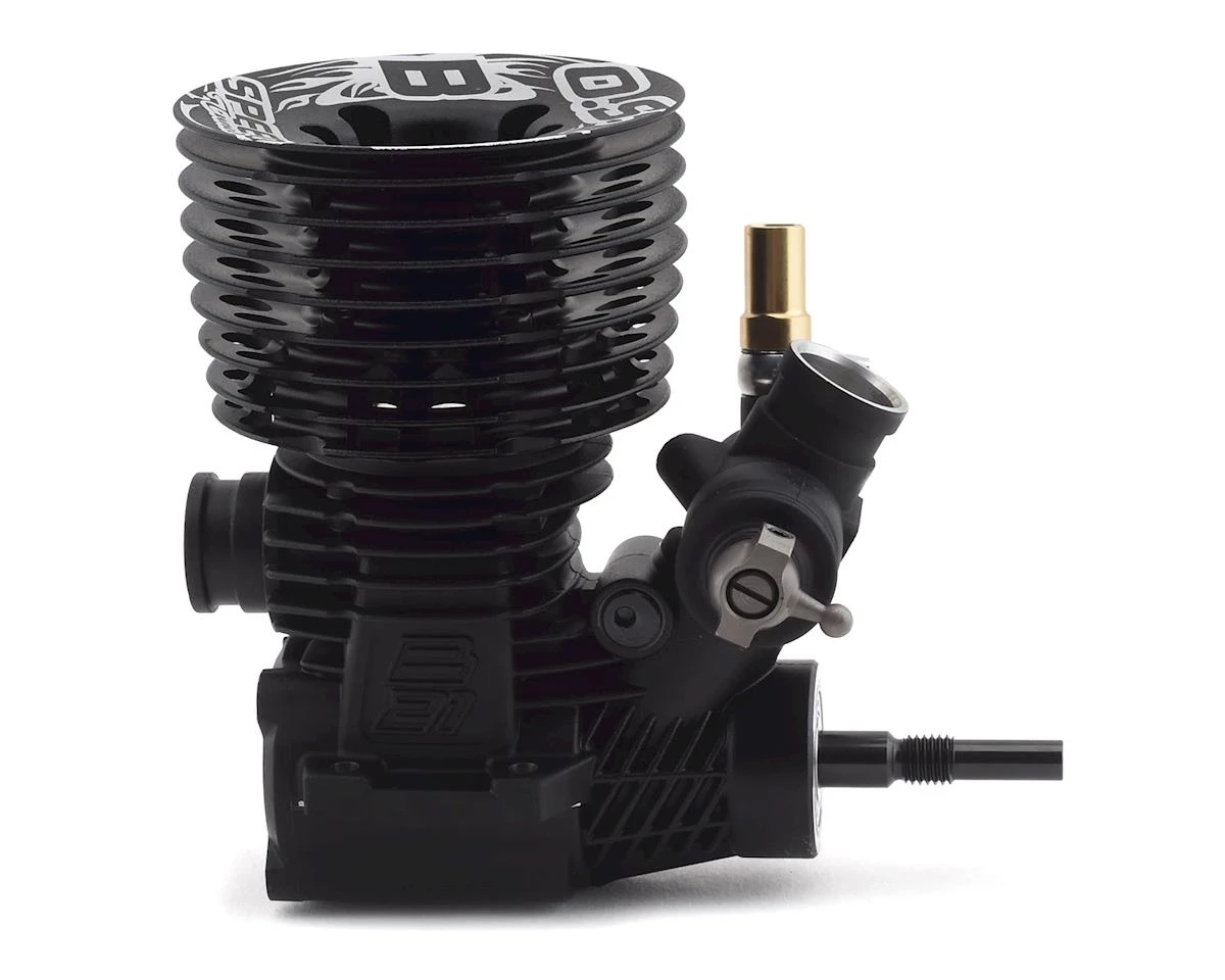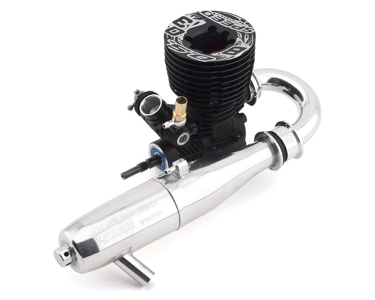 This model has a re-designed crankcase, engraved with the “O.S.” Logo featuring an updated cooling fin with enough surface area for effective heat dissipation that gives the buggy engine a powerful look. The crankshaft has been updated to optimize the rotational mass and follows the O.S. SPEED traditions of a DLC coating to reduce friction, dual tungsten slugged counter-balance and a ceramic rear bearing to reduce vibration and increase RPM. The inner head has a silicon O-ring for improved vibration reduction and better dust resistance. This combo features a set of exhaust system parts, including the T-2100 SC tuned silencer and a M 2004 (85 mm) exhaust manifold. This engine also features a re-designed ball link which allows a change in the position of fixing screw for easier access, a 6mm and a 6.5mm venturi, and a five-ports liner which performs excellent at medium and high speed ranges.