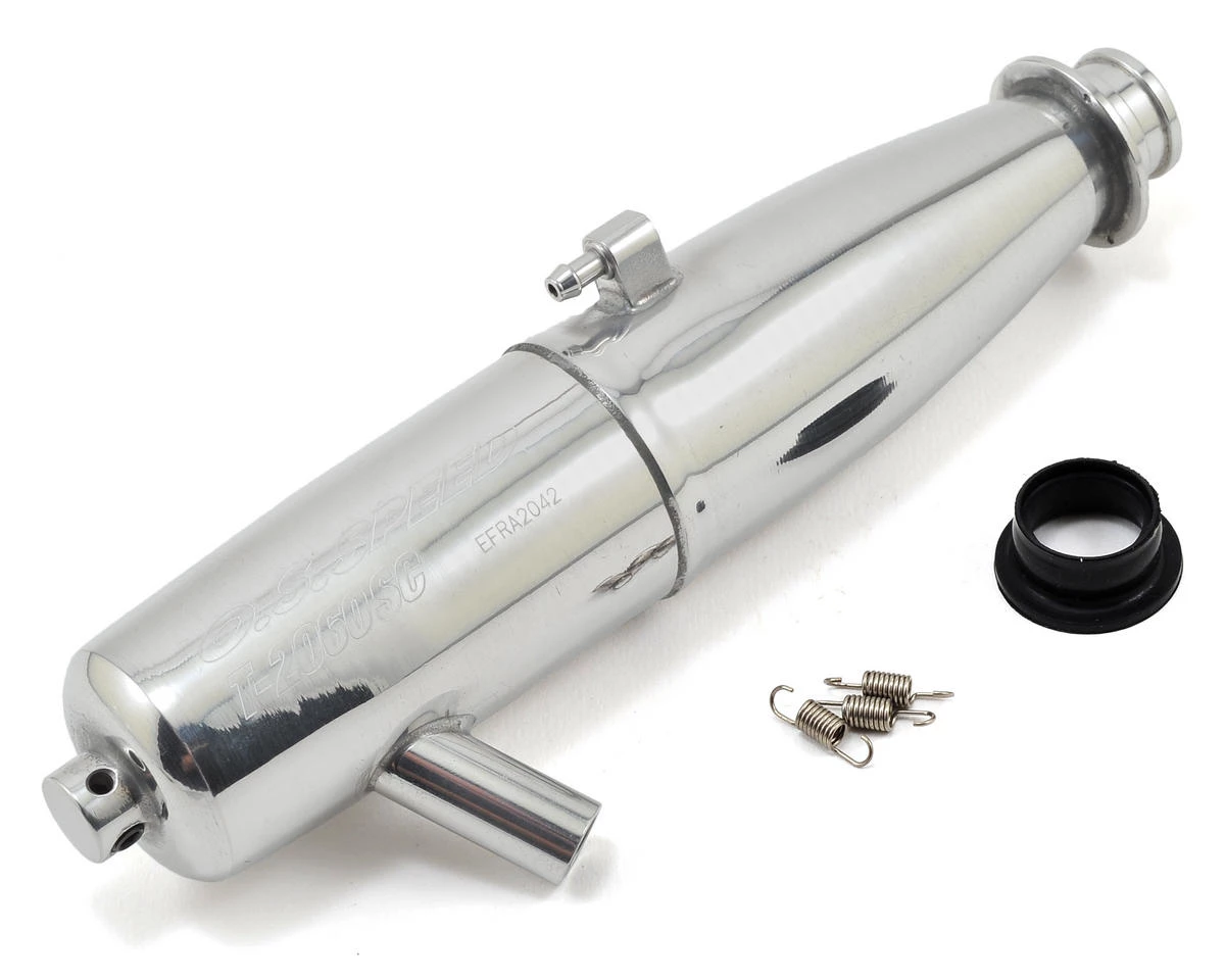 This is the O.S. TB-01/T-2060SC WN polished one piece tuned pipe (no manifold). This is the one piece variety and requires an off-road manifold, which attaches to the tuned pipe using three small springs (not included). This pipe is designed specifically for O.S. engines, such as the O.S V-Spec engines, and will provide excellent bottom end and top end performance. This pipe also features a welded nipple so you won’t have to worry about losing back pressure due to an air leak.
